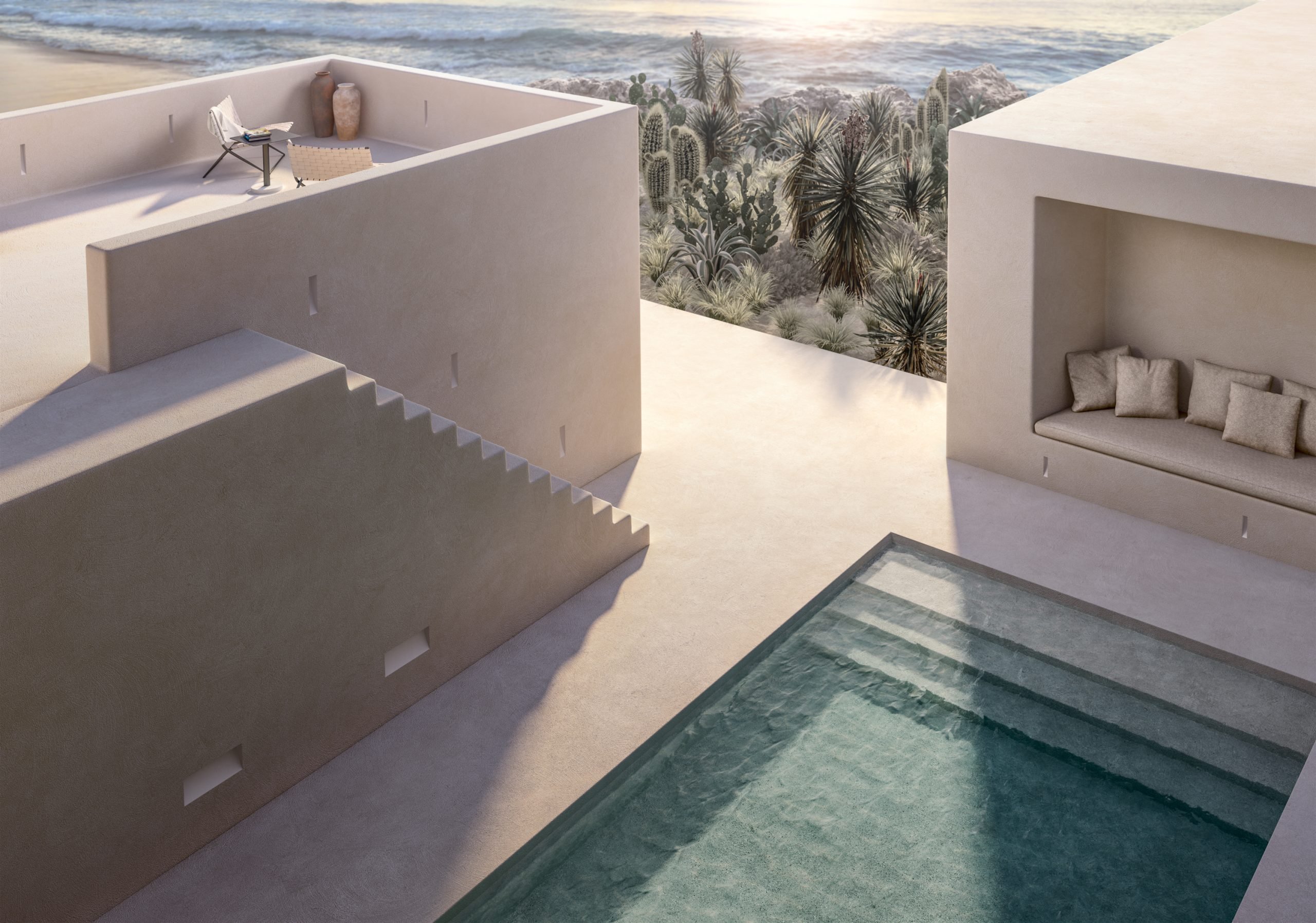 These minimalistic yet corporeal lights are made entirely of BETALY®, a natural, versatile and durable material specifically designed for its outdoor illumination products.
