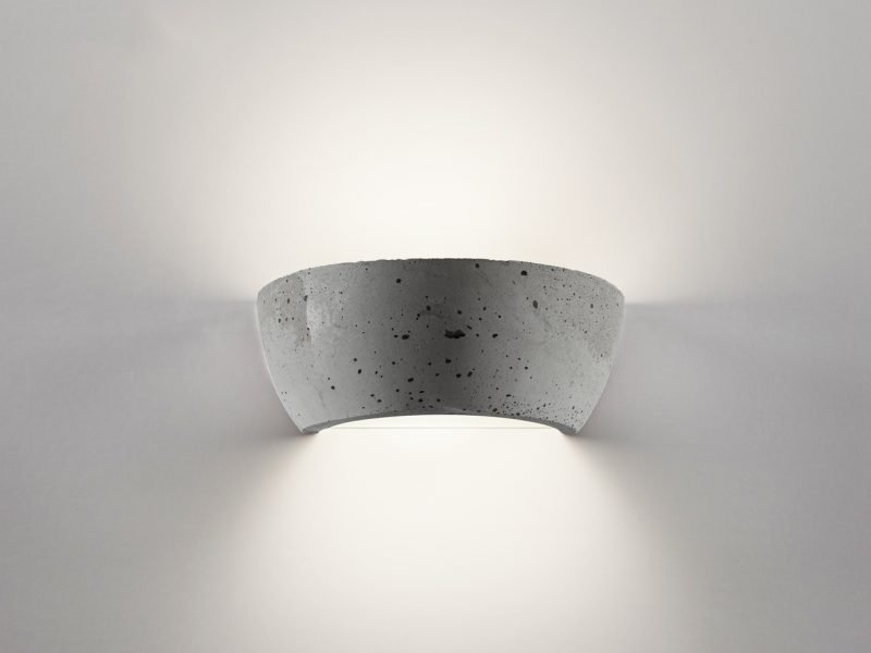 LED-wall lamp made of CONCRETE® indoor with a contemporary design with dual light emission. The circular shape diffuses the light both upward and downward. The soft round lines ensure a minimal design suitable for all types of environments.