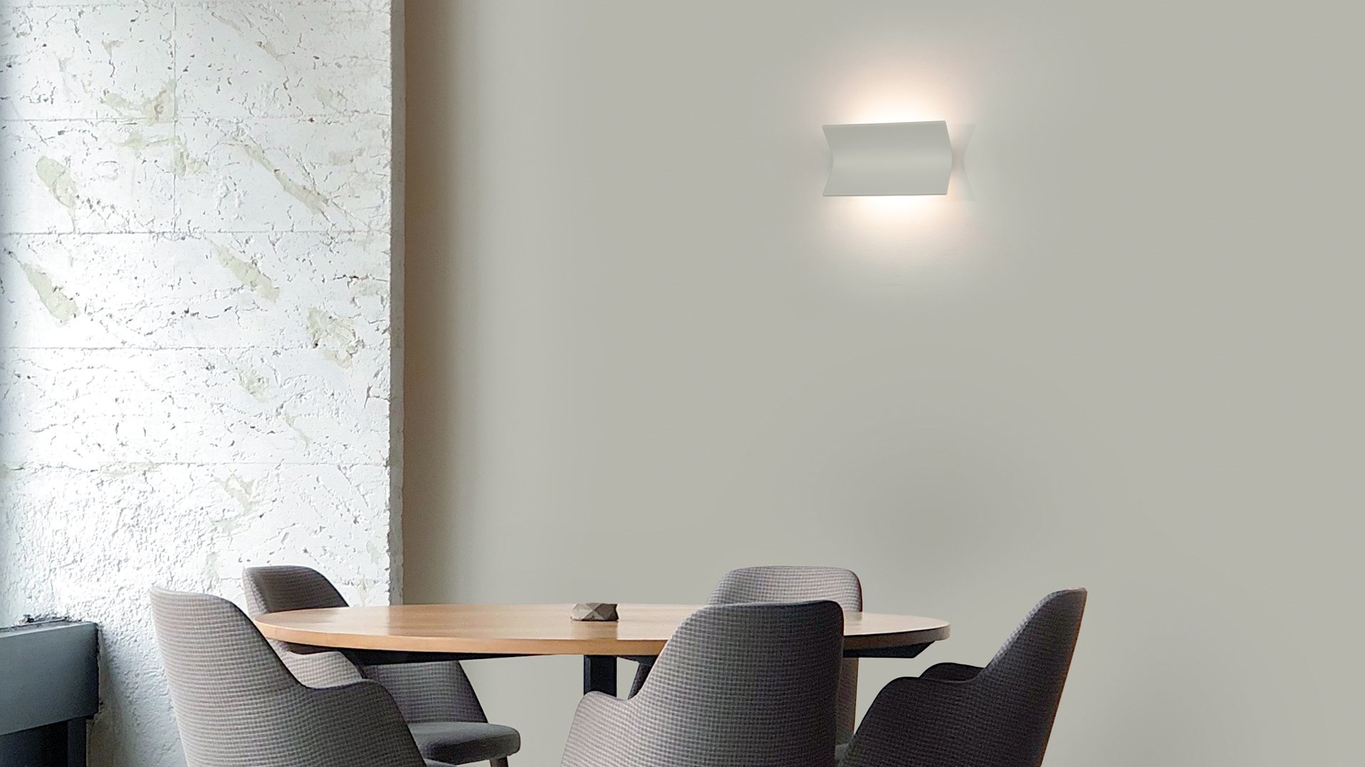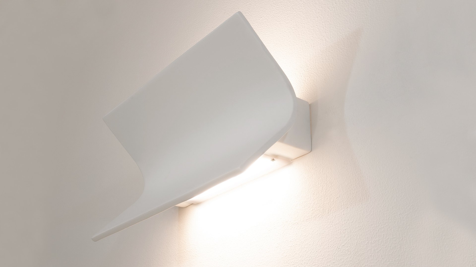 The product looks like a slightly folded sheet, inclined on the long sides, which guarantees the diffusion of light.