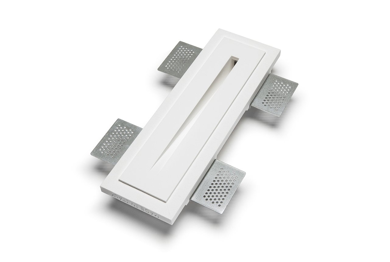 It consists of a long thin groove in which the LED is set. Available with housing box for brickwork.