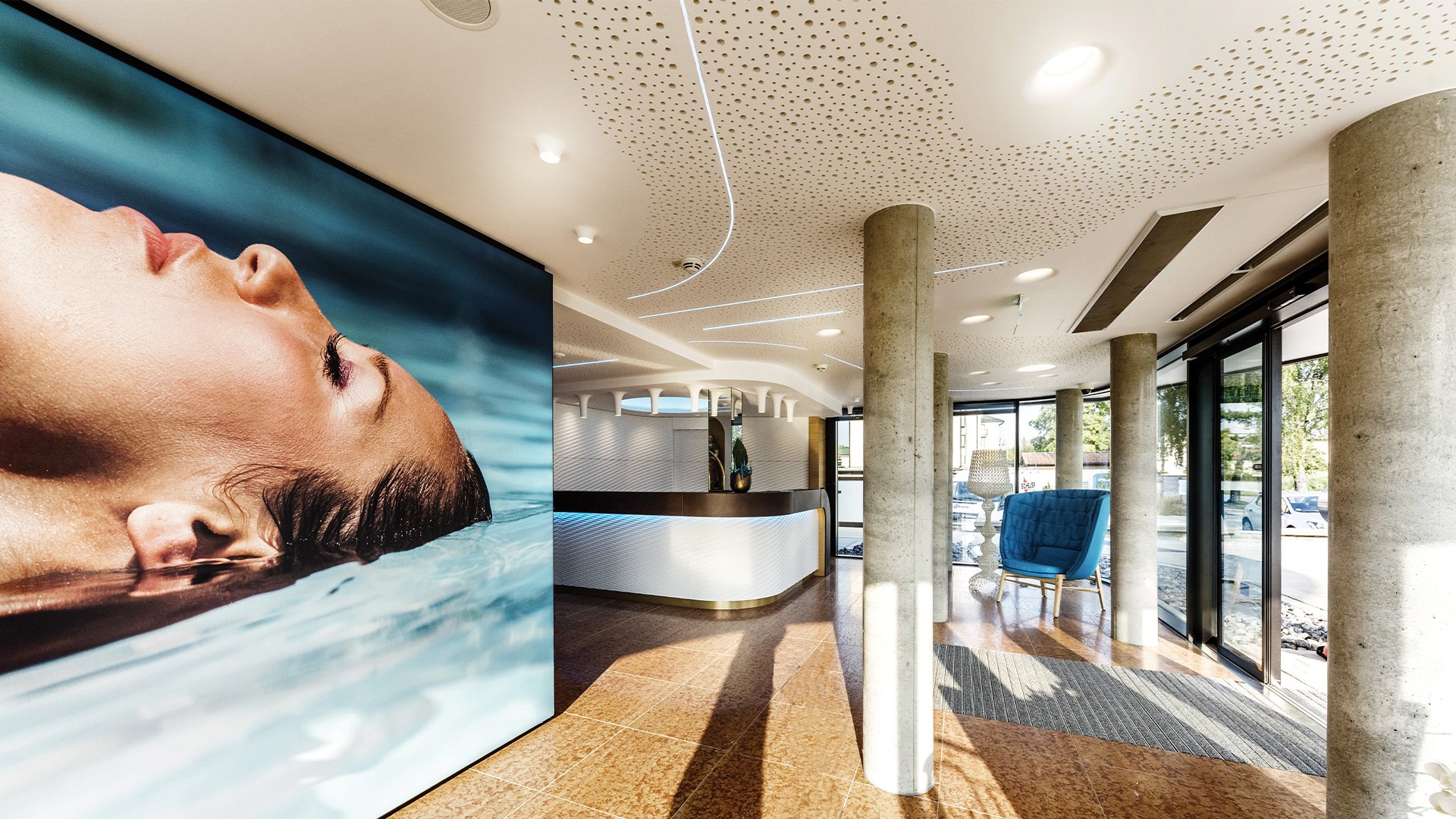 It consists of a circular recessed hole set in the ceiling with a smooth edge.
