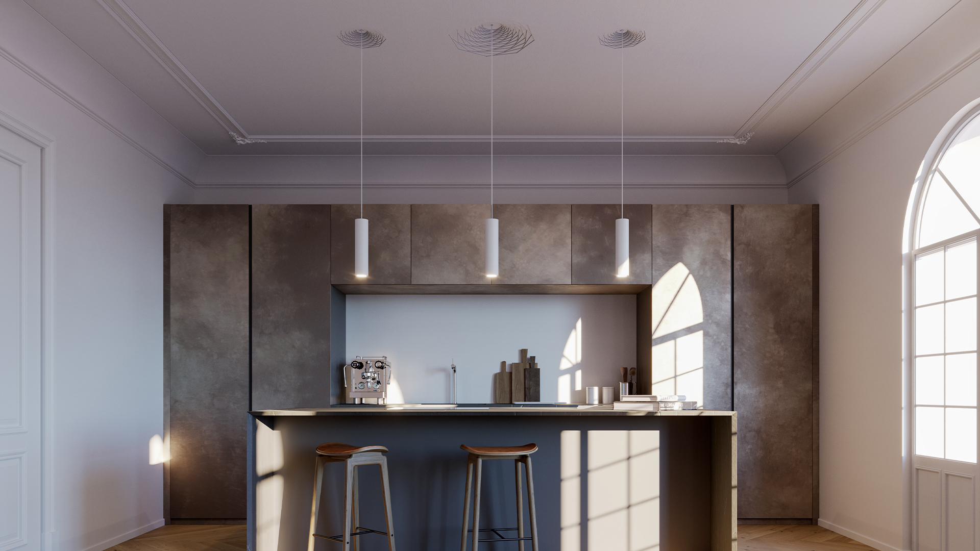 LED CRISTALY® hanging light. Featuring a cylindrical shape, it can be installed with cables of different colours. The soft light produced can be adapted to all needs.