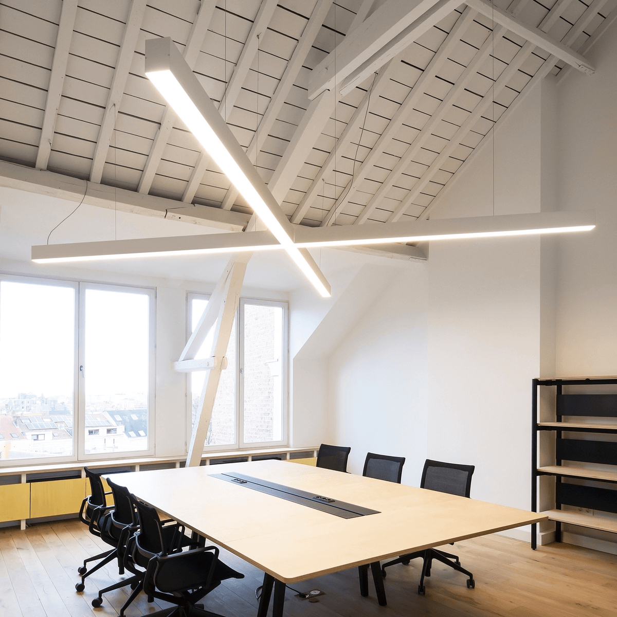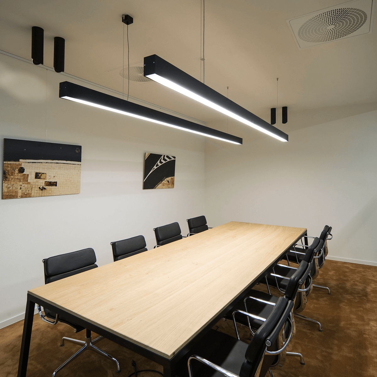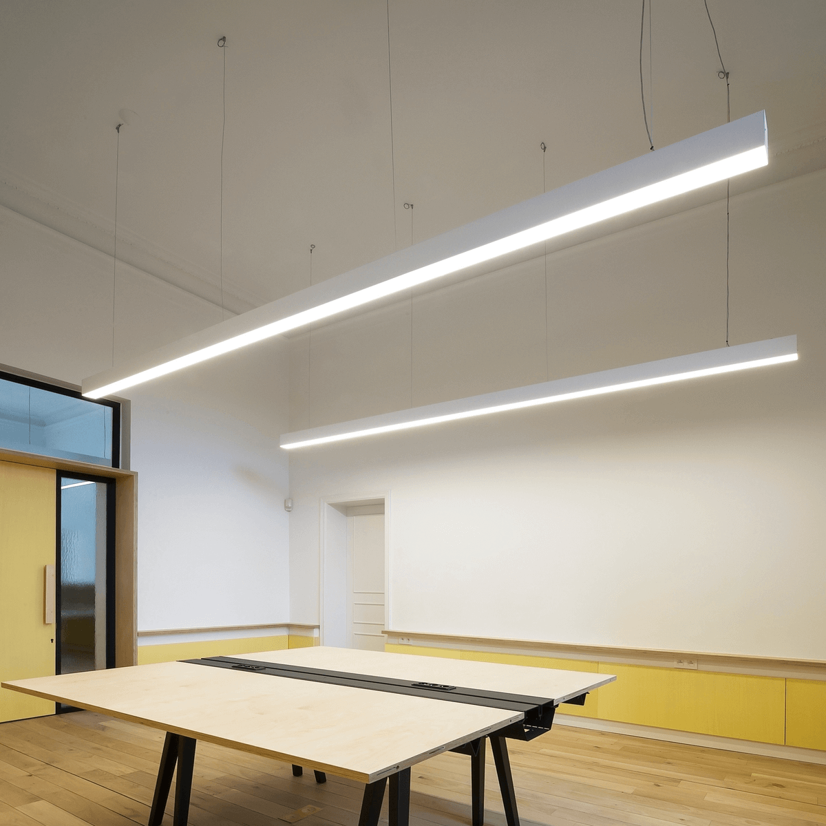 Metroline is a linear light fixture available in two mounting variants: Suspension and Surface Mount.