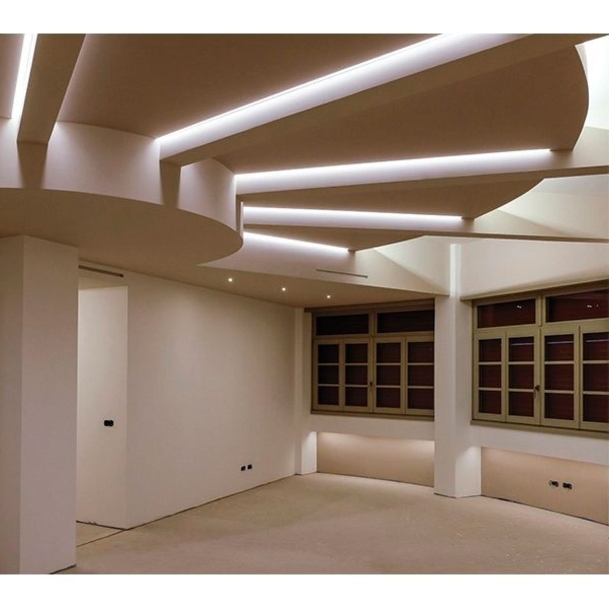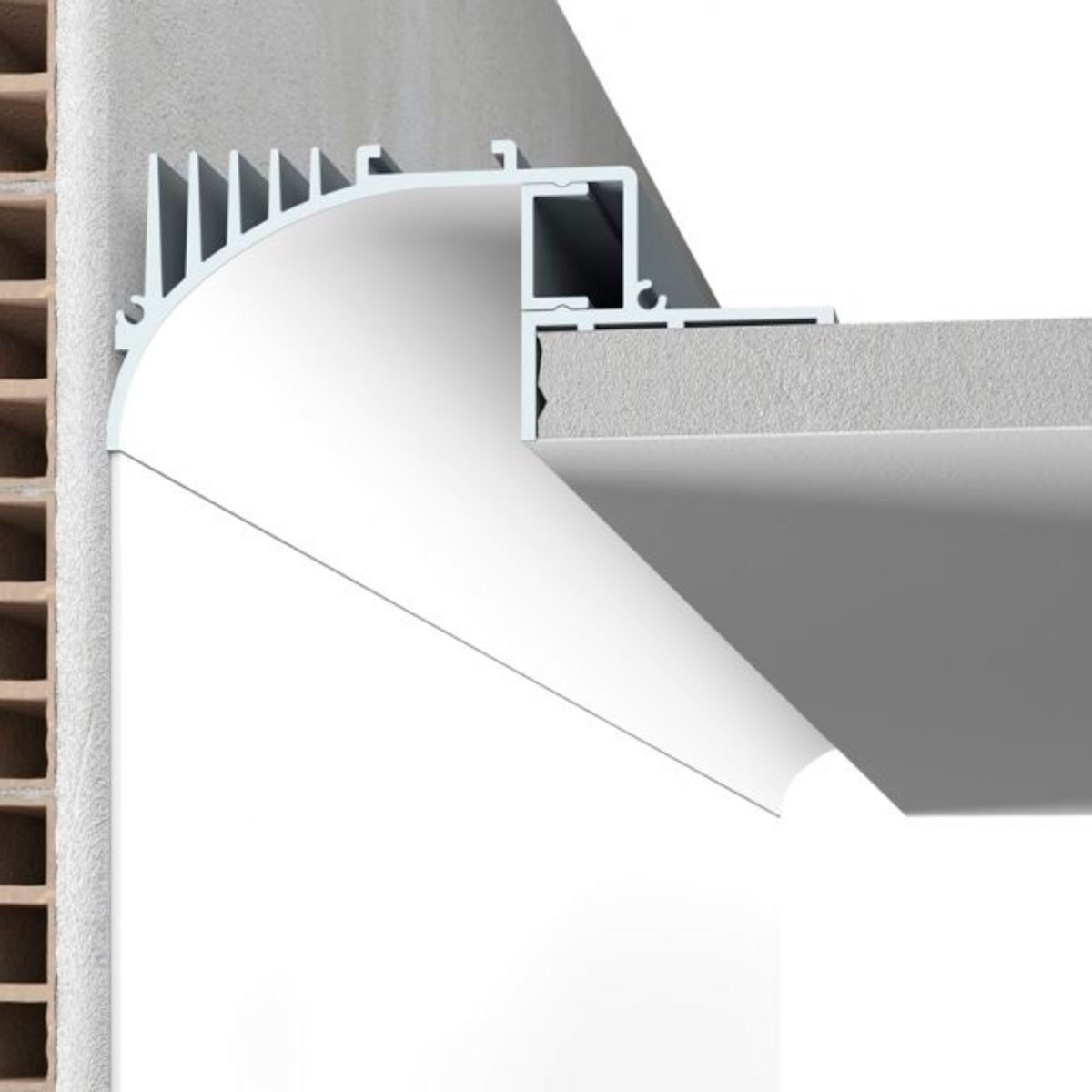 Matt RAL 9010 painted ALUMITE® profiles with quick recessing system for use with 9010 LED strips with wall washer indirect light effect. Each profile pack includes a finishing embossed opal methacrylate screen. Strip LED 9010 to be ordered separately. Suitable for Wood.
