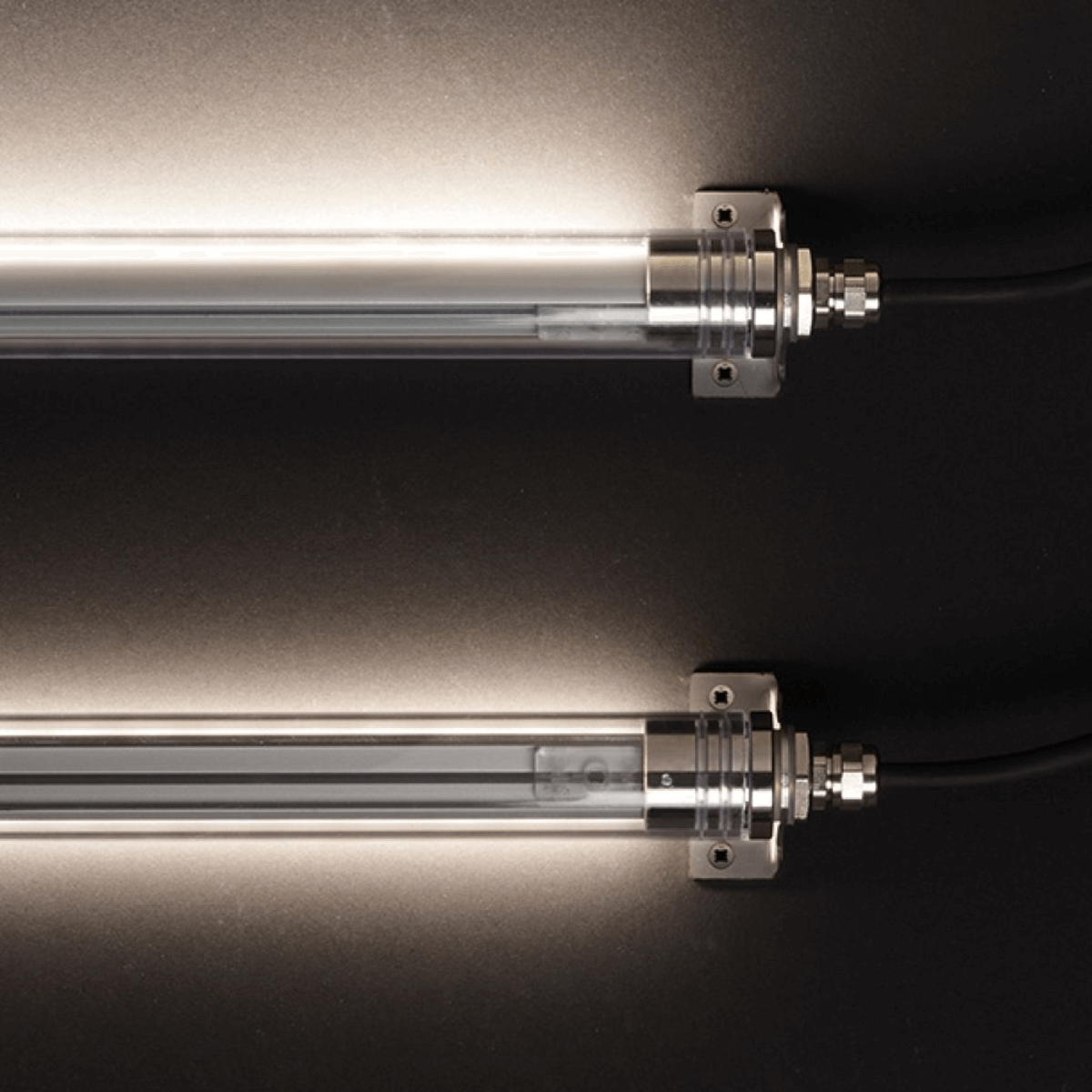 Adjustable LED profile IP67 in coextruded anti-UV transparent methacrylate and AISI 316L stainless steel terminals. Neoprene cable 100 cm. Wall or ceiling installation possible. Available in different lengths up to 3 meters.