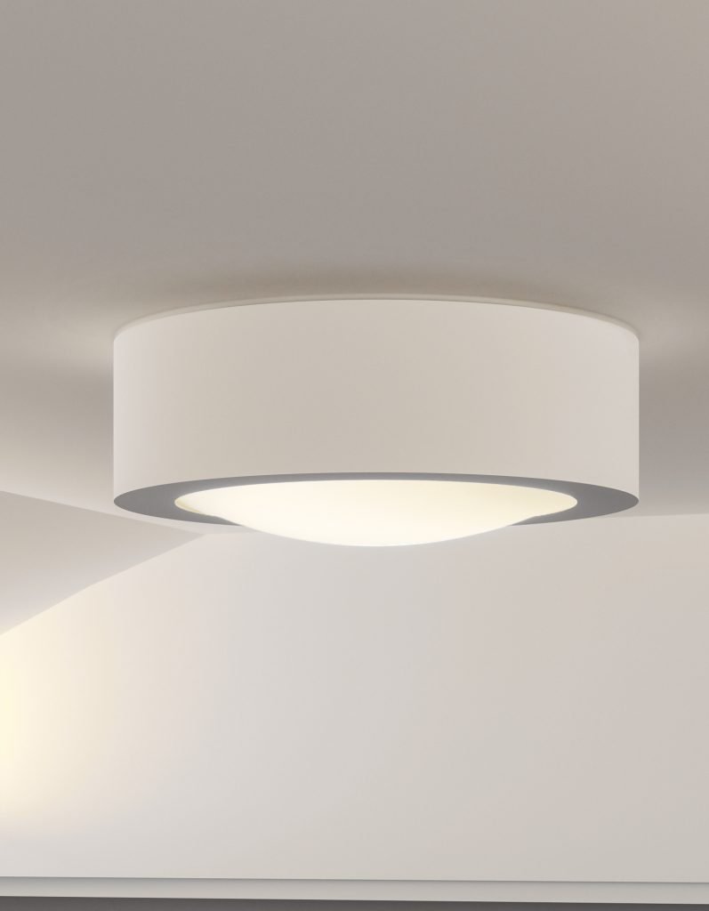 LED 9010 CERAMIC recessed ceiling light with an essential design with glass diffuser and single light emission.