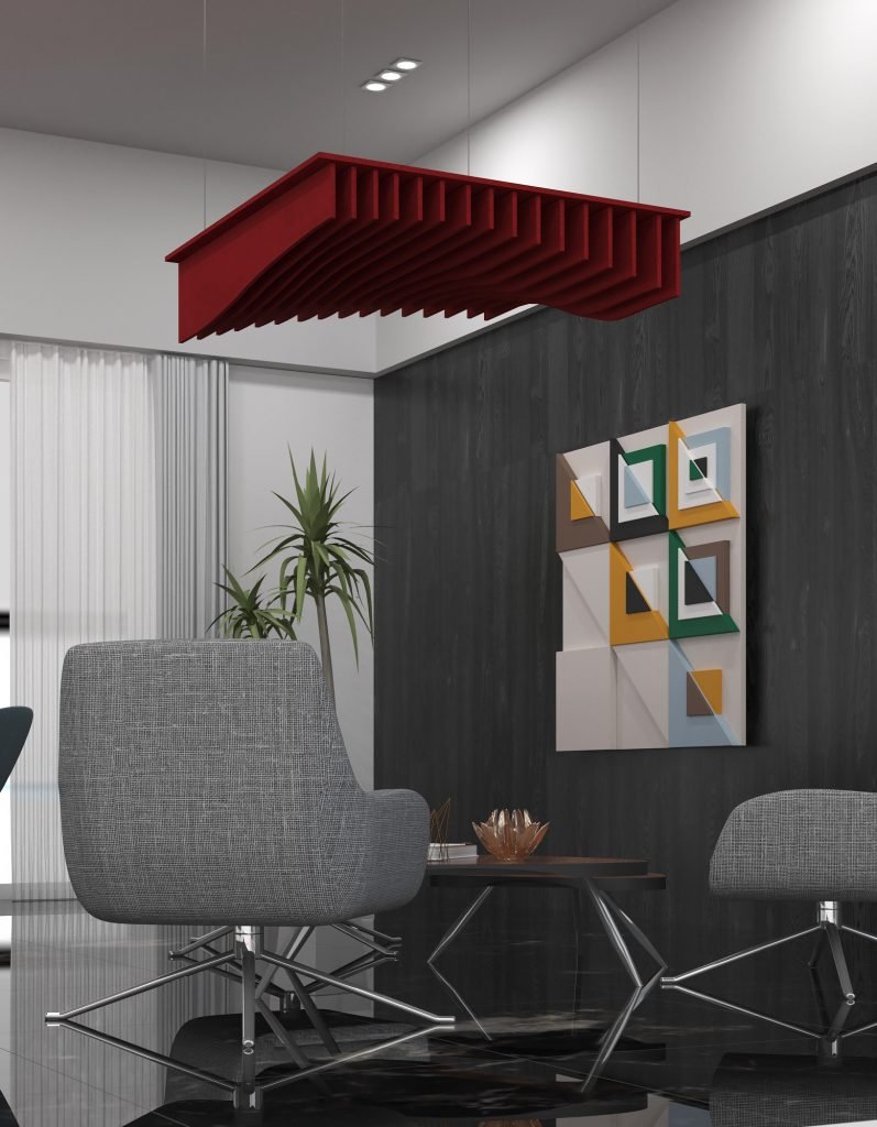 The materiality of the felt stays in the foreground, has a sound-absorbing effect and cares for a healthy indoor climate. Without any chemical additives the products of series WAVE contribute to an improvement of the indoor climate and acoustics. Thanks to the great number of colours, the acoustic elements can easily get aligned with existing room concepts.